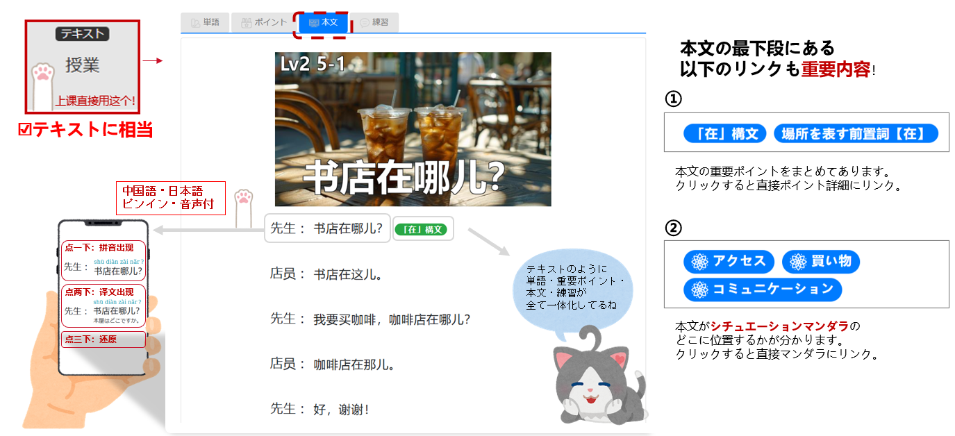 英語圏向け教材ではカバーできない「日本人の弱点」に焦点。特に 声調の習得 と “話すマインド”の形成 を重視