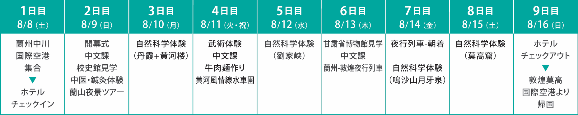 ・8/8当日の蘭州中川空港への迎えのバス時刻は参加者のフライトが確定次第、大学に依頼します。